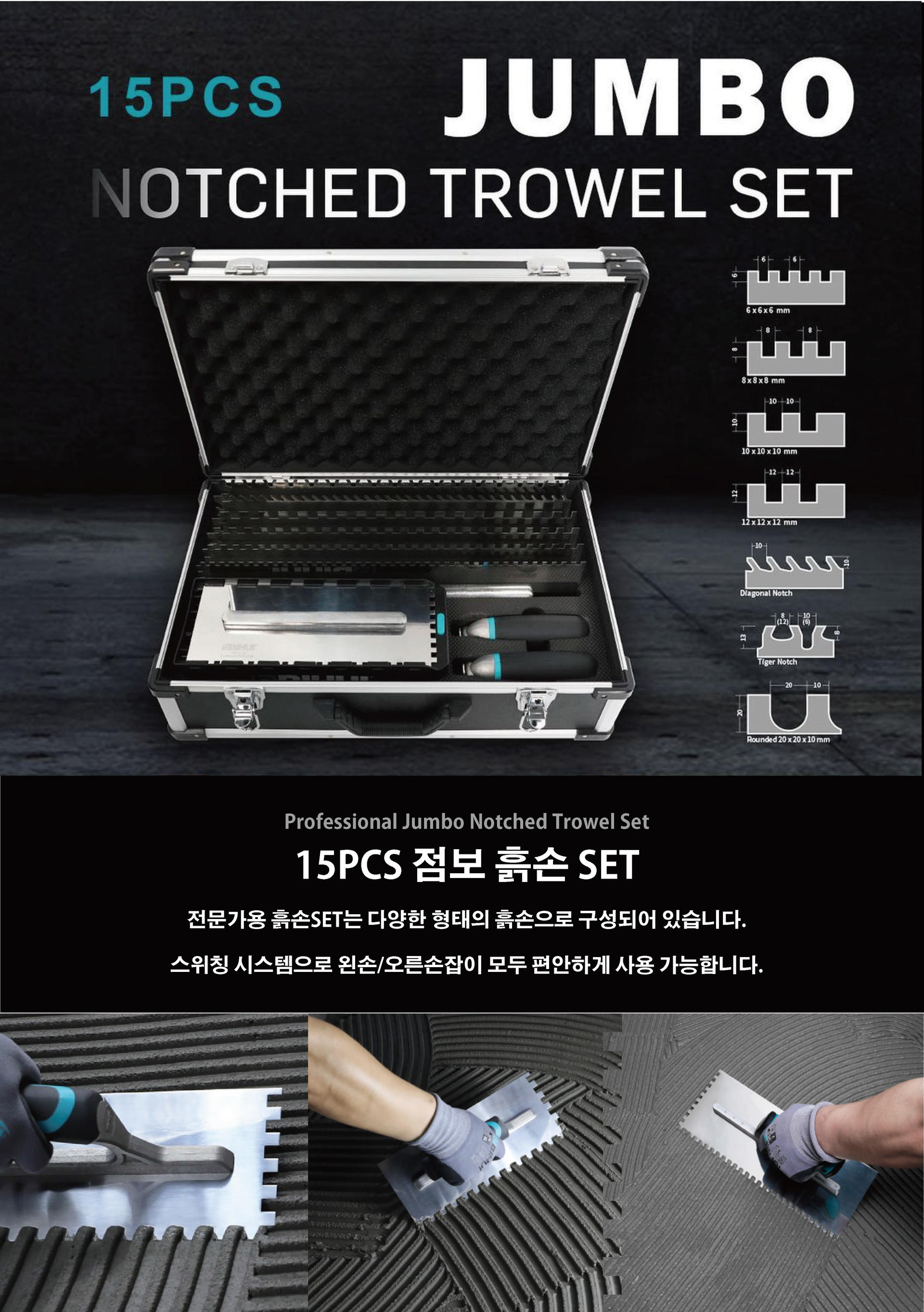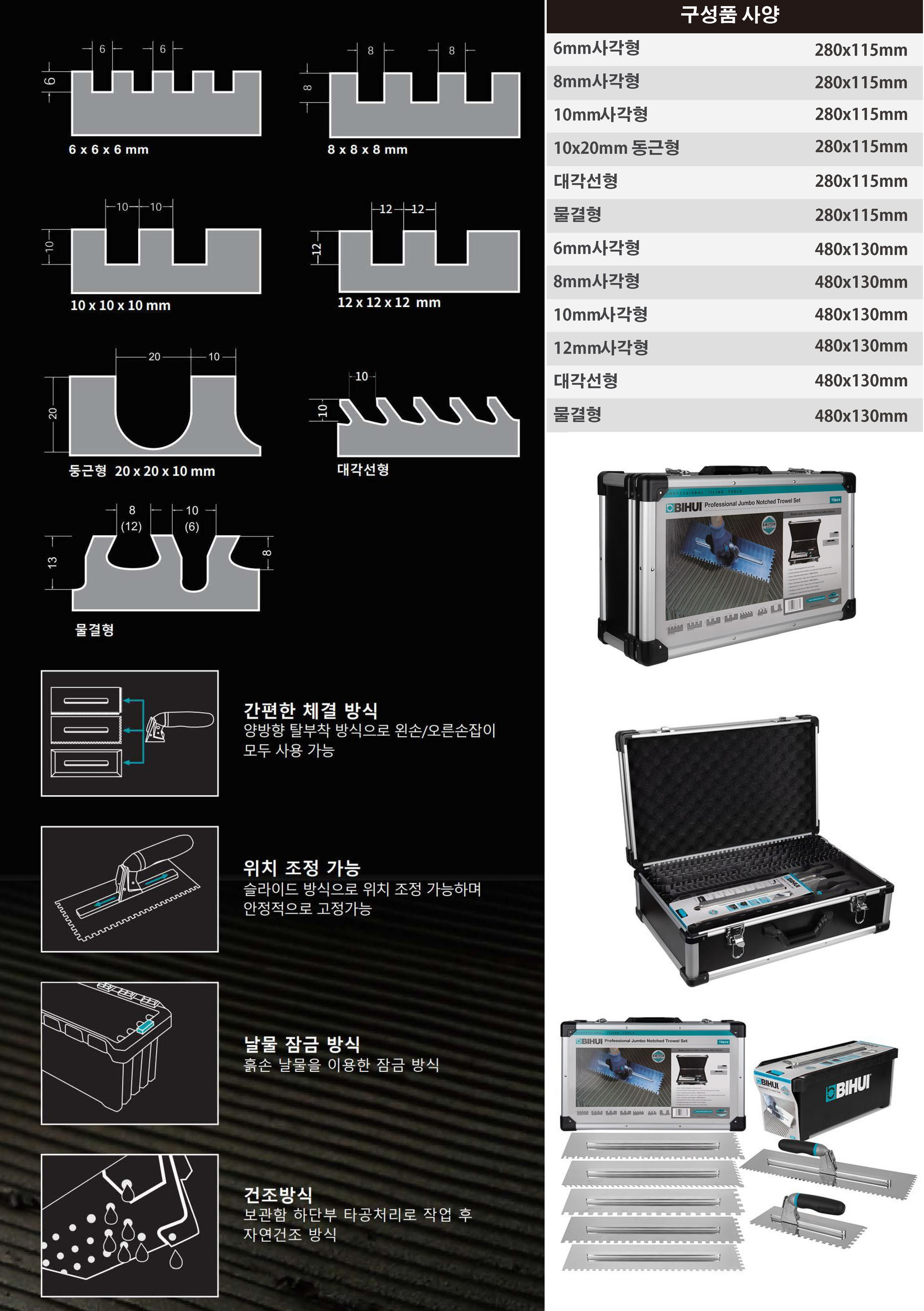 [Bihui] 전문가용 15PCS 탈착형 흙손 점보SET