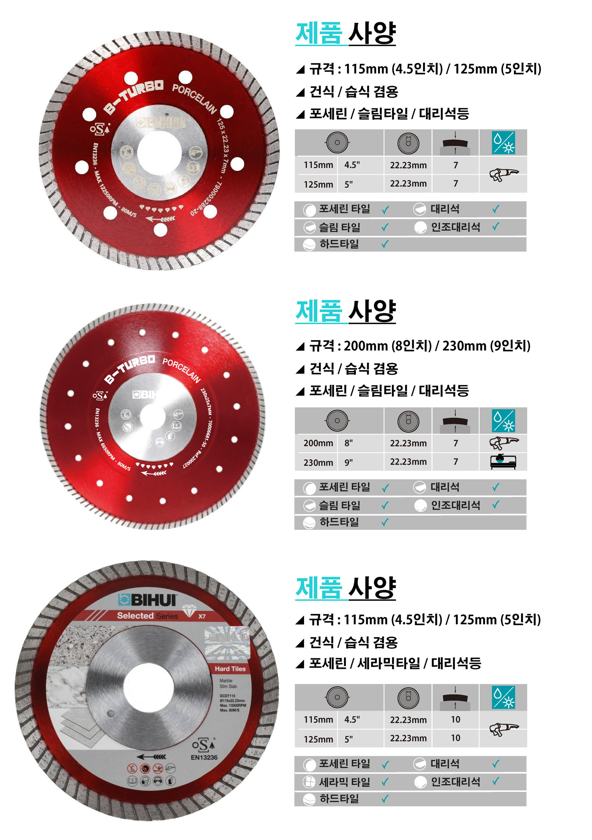 [Bihui] 건식/습식 겸용 다이아몬드 휠 (포세린/세라믹/슬림타일등)